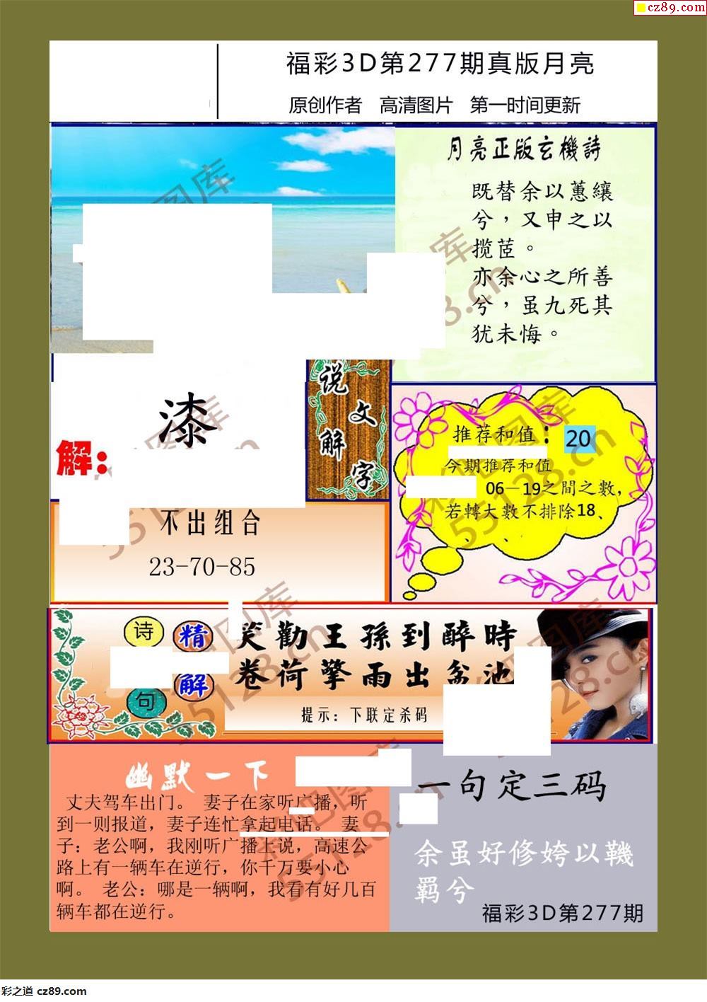 月亮25年277期福彩3d玄机图谜
